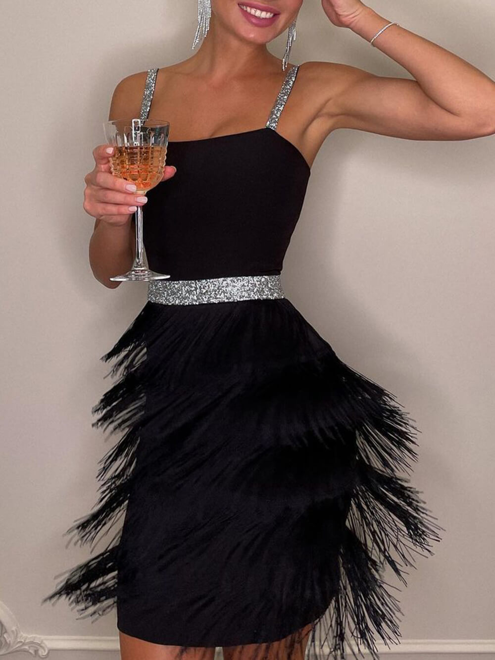 Date And Dinner Socialite Style Suspender Fringe Mini Dress