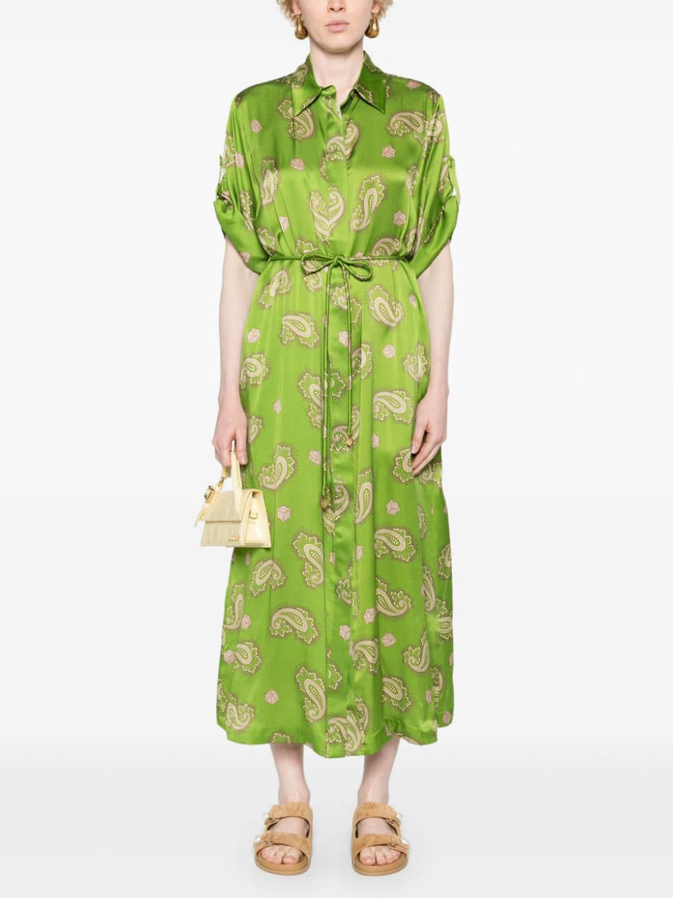 Exquisite Satin Paisley Print tie Midi Dress