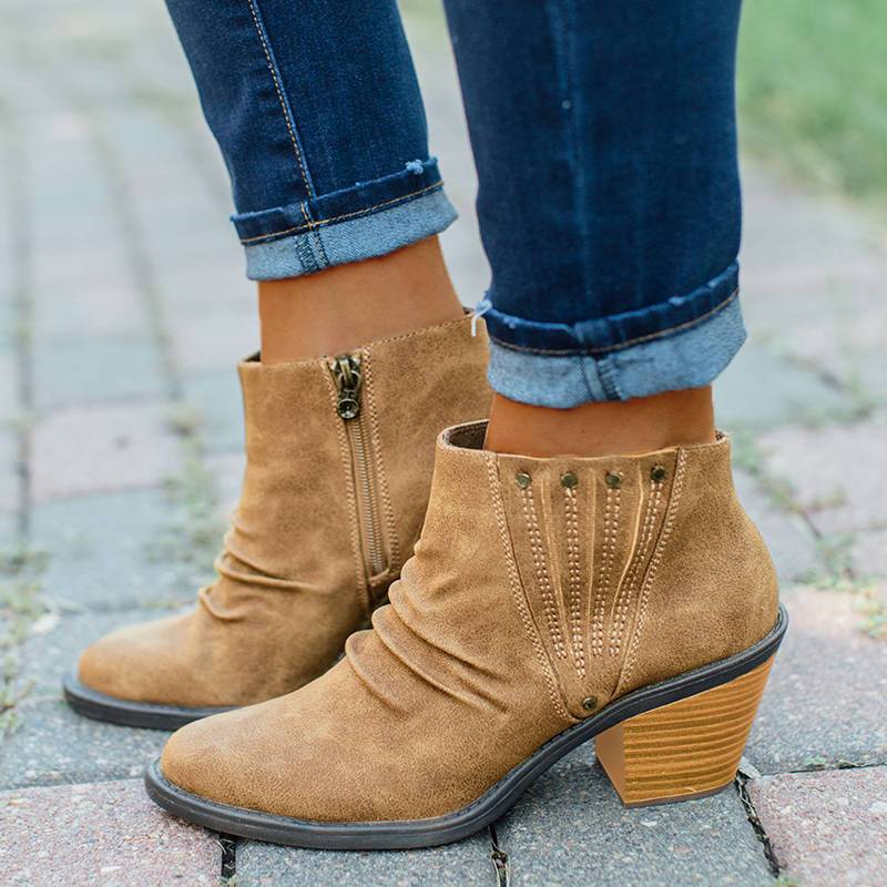 Vintage Solid Chunky Heel Ankle Boots