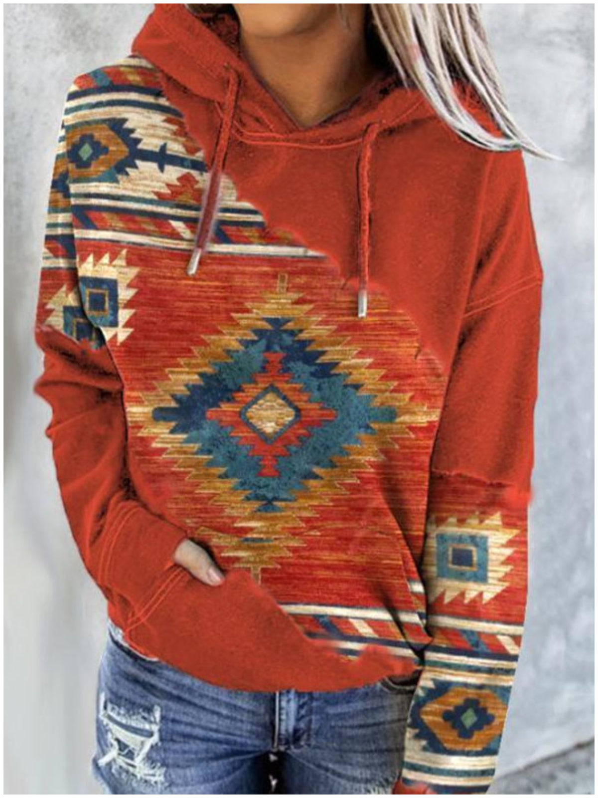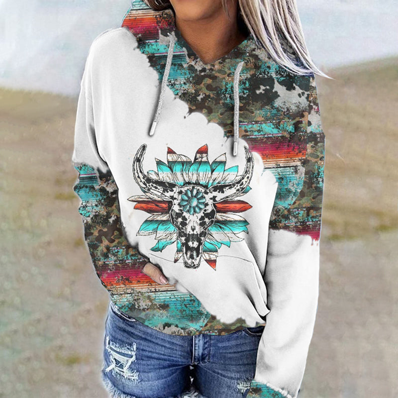 Western Print Long Sleeve Casual Hoodie