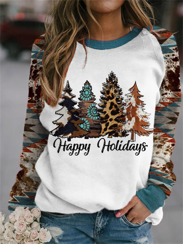 Western Christmas Trees Aztec Patchwork Sweatshirt