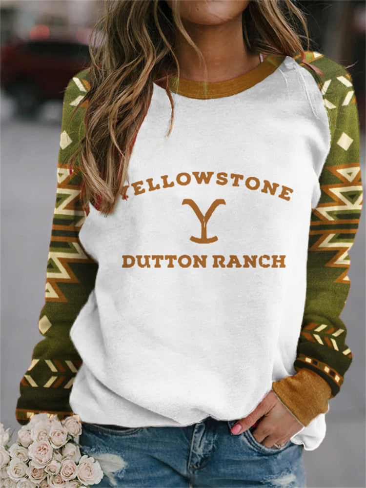 Western Logo Print Aztec Patchwork Sweatshirt