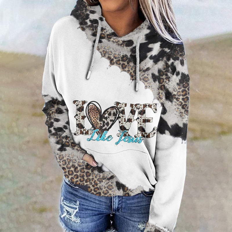 Western Leopard Print Long Sleeve Casual Hoodie