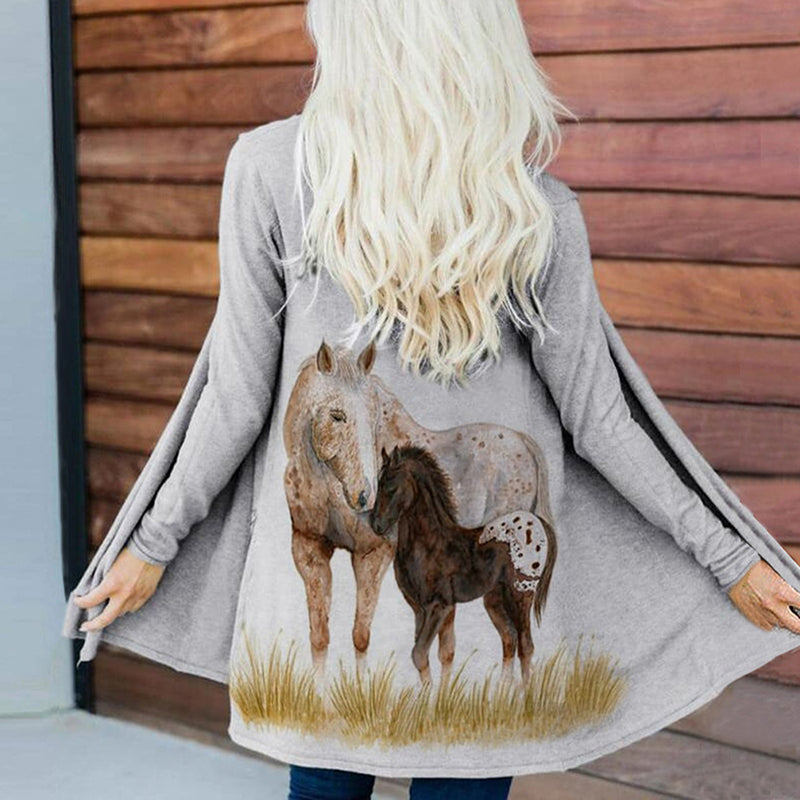 Western Horse Print Casual Long Sleeve Cardigan
