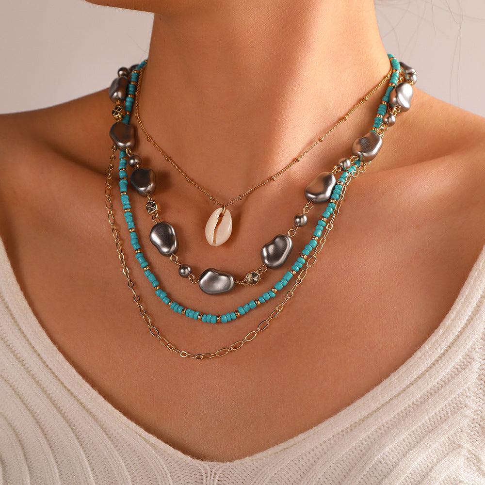 Wisherryy Layered Shell Clavicle Necklace