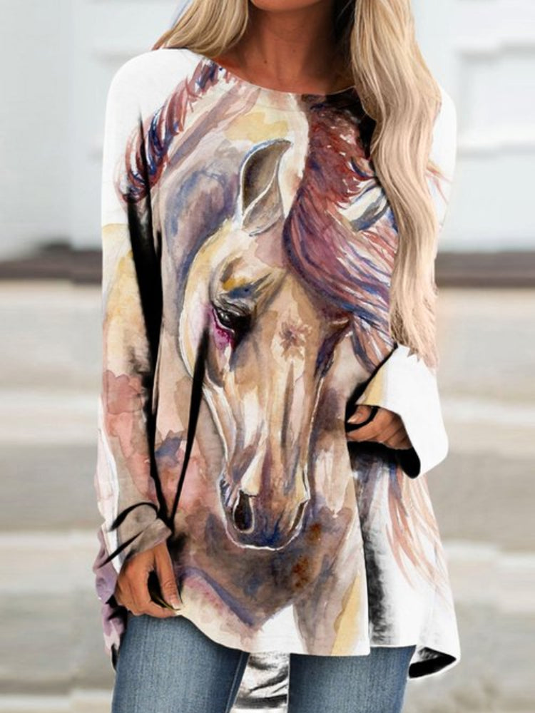 Horse Oil Painting Print Long Sleeve Tunic