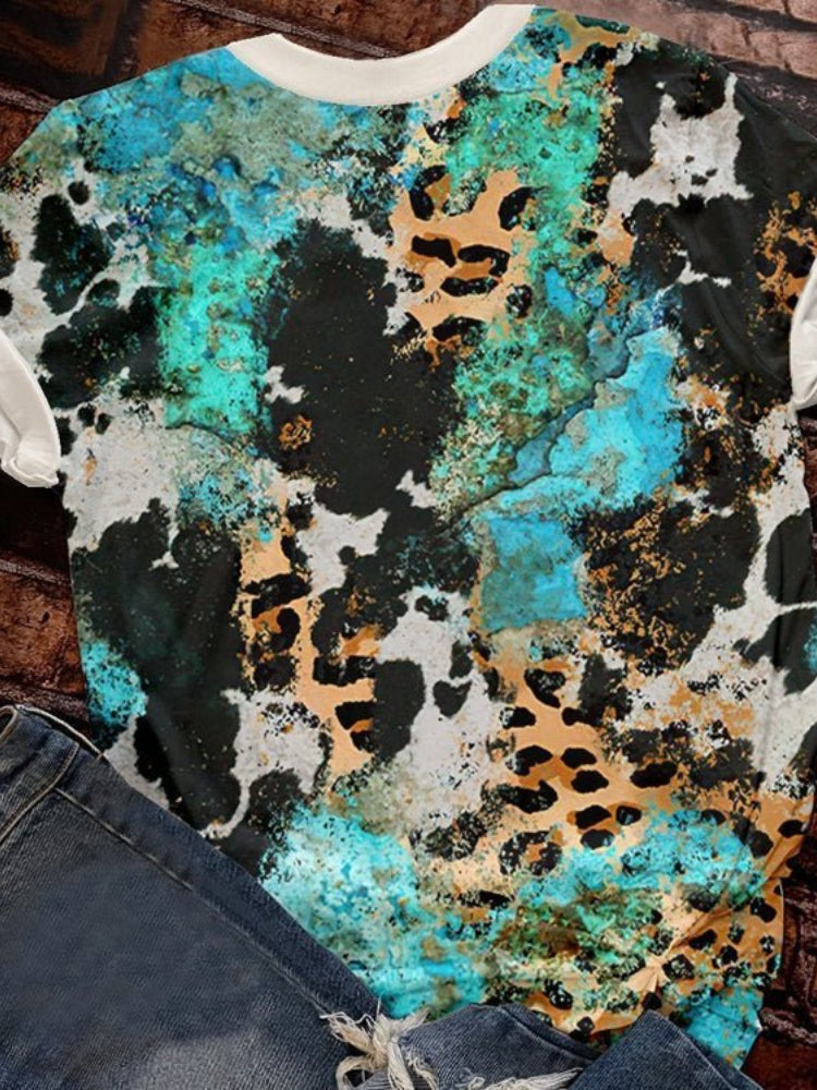 Blessed Sunflower Cow Pattern Leopard Print T Shirt