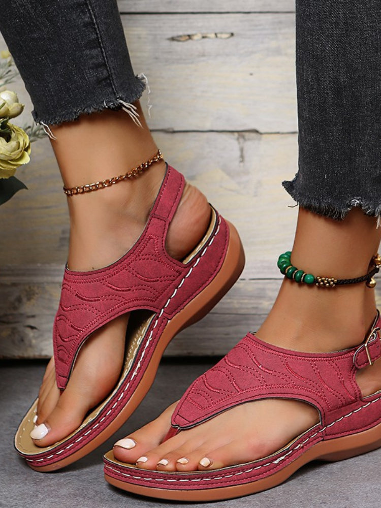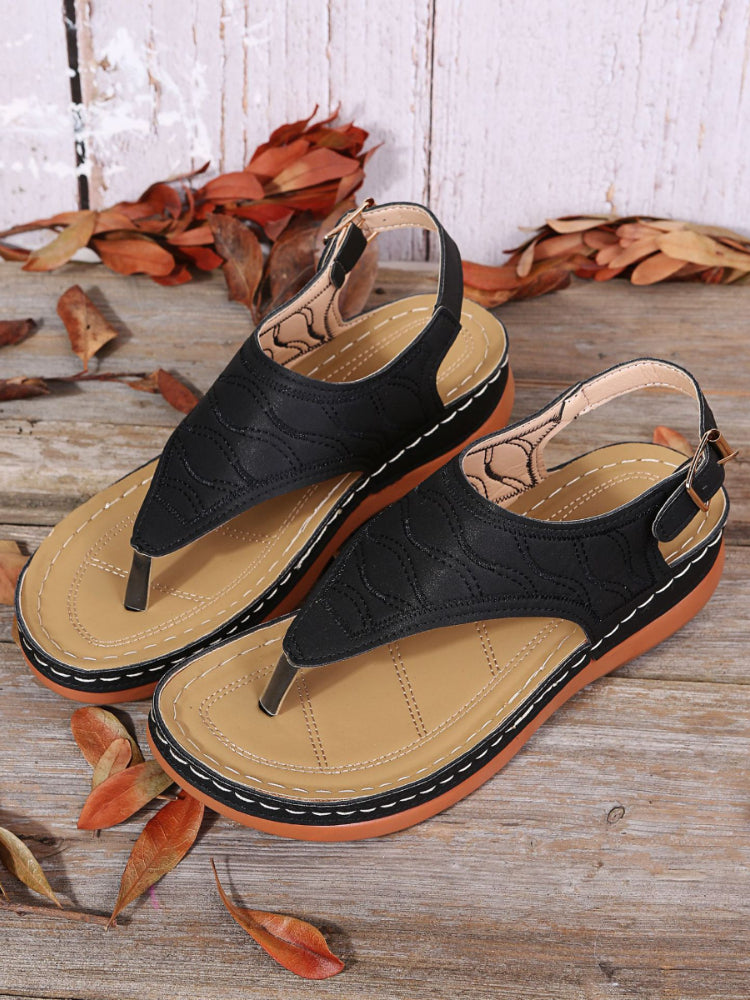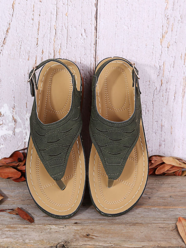 Buckle Solid Round Toe Flip-Flop Sandals