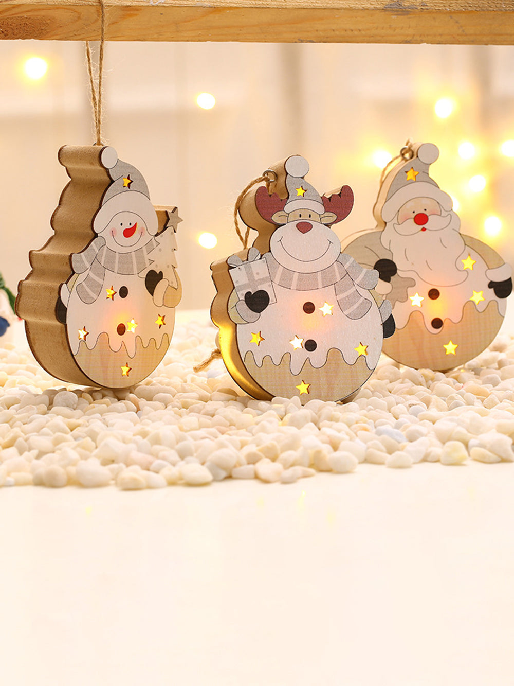 Illuminate your holiday spirit with our Christmas Wooden Light-Up Hanging Ornament. This charming decoration adds a warm and inviting glow to your festive decor, creating a cozy atmosphere that captures the essence of the season.