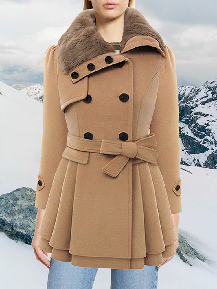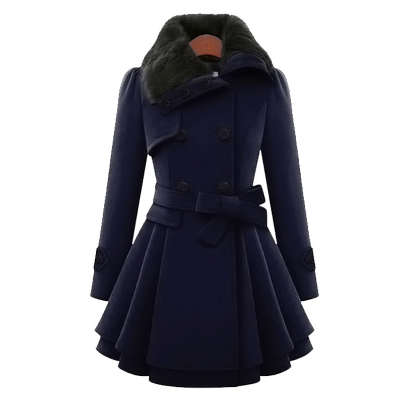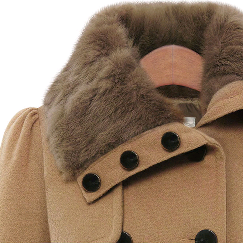 Fashionable Fur Collar Double Breasted Wool Coat
