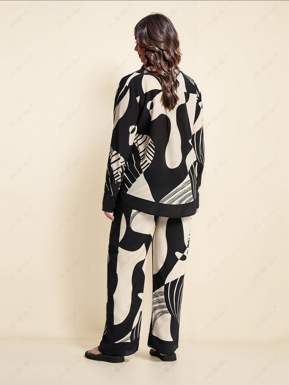Introducing our LikeMyChoice® Fashion Graffiti Print Loose Wide Leg Pant Set, a bold and stylish set that blends comfort with fashion.