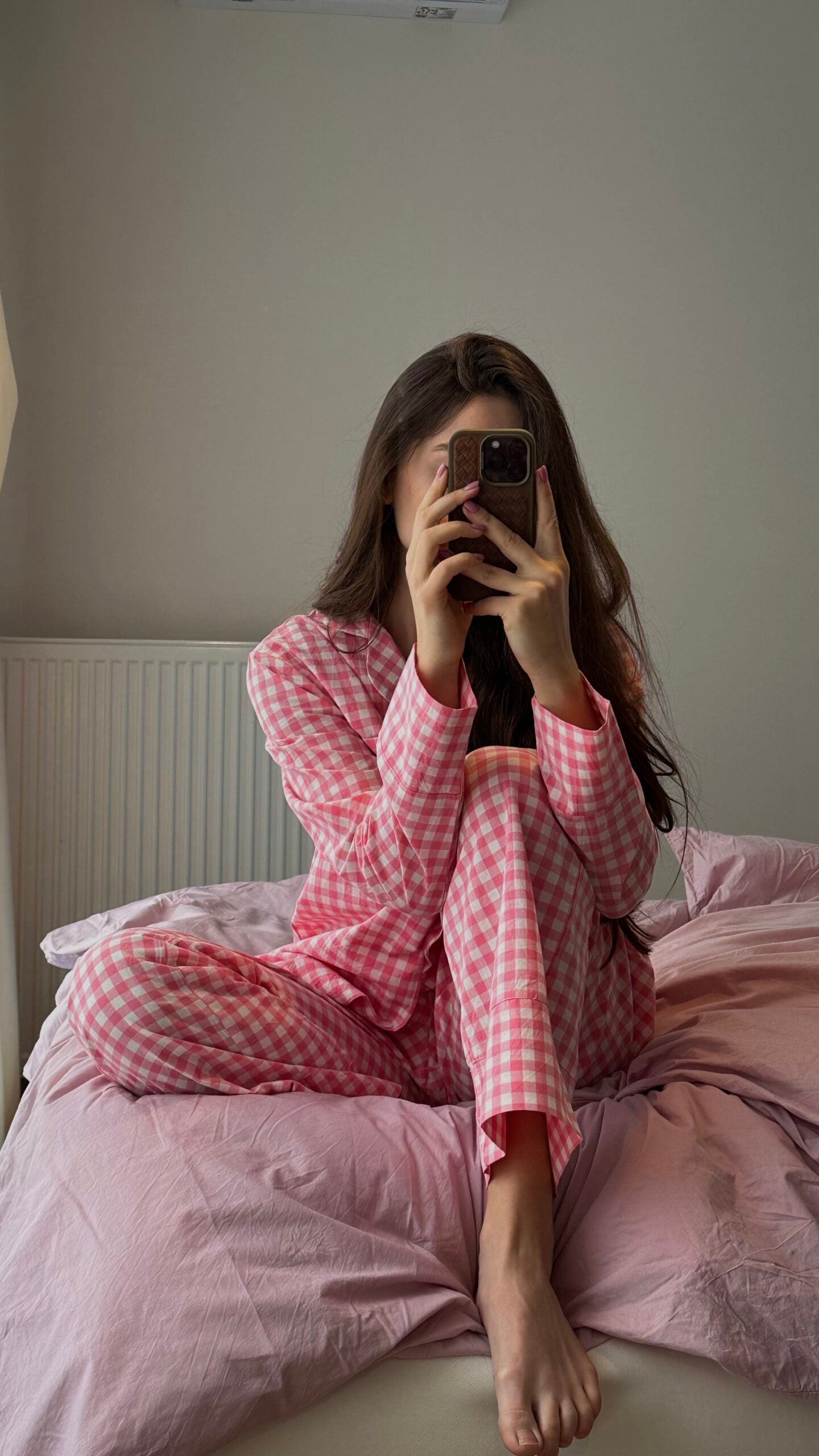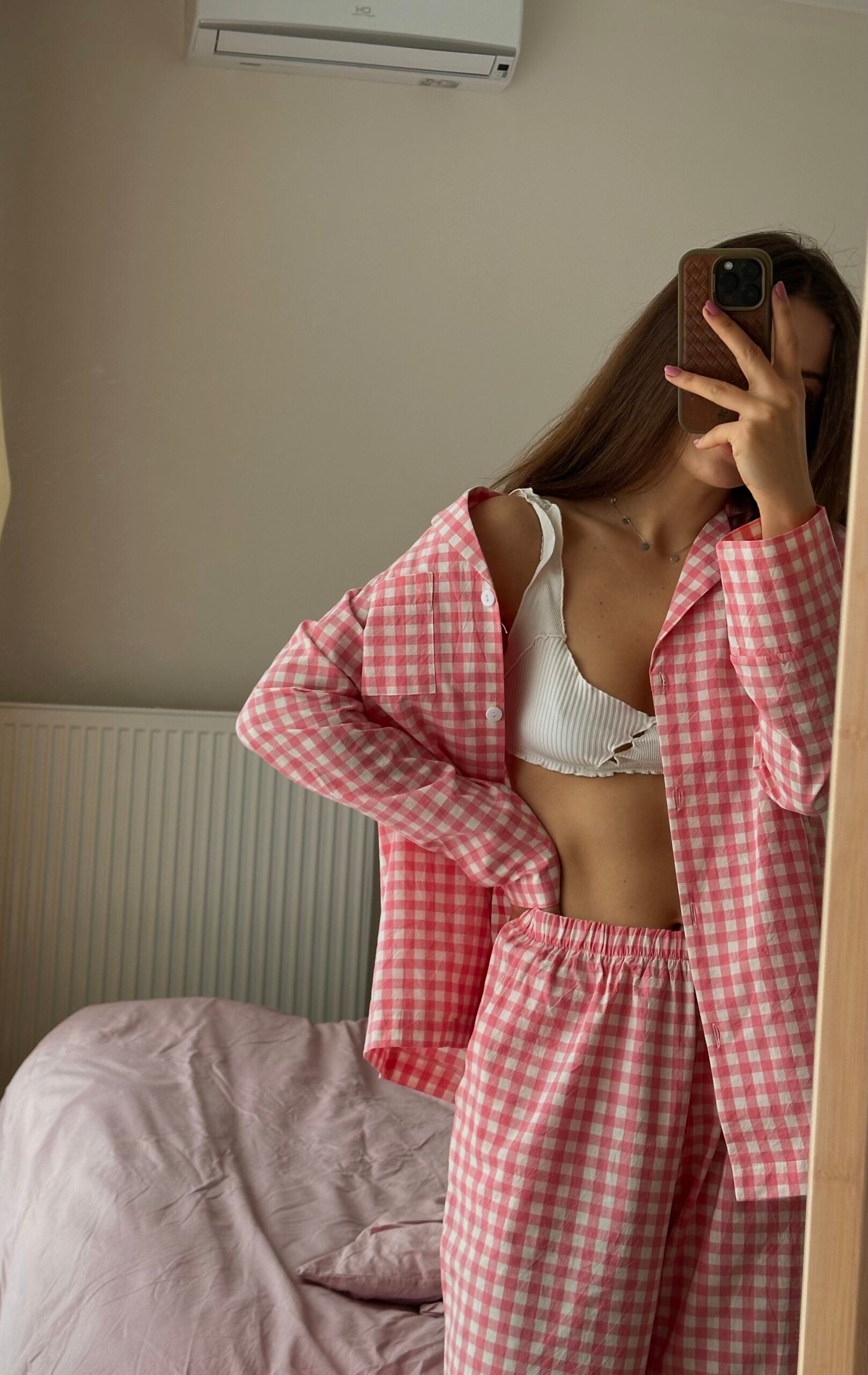 Pink Plaid Loose Pajamas Set
