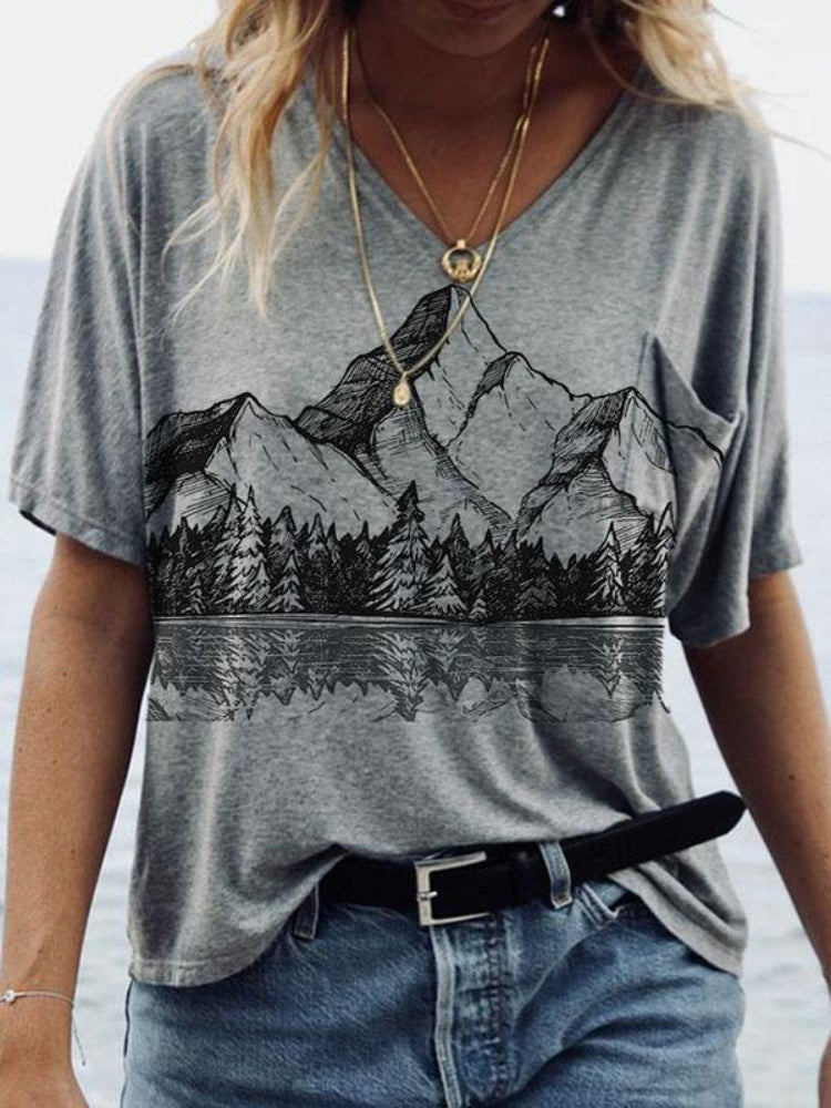 Landscape Reflection Sketch Art V Neck T Shirt