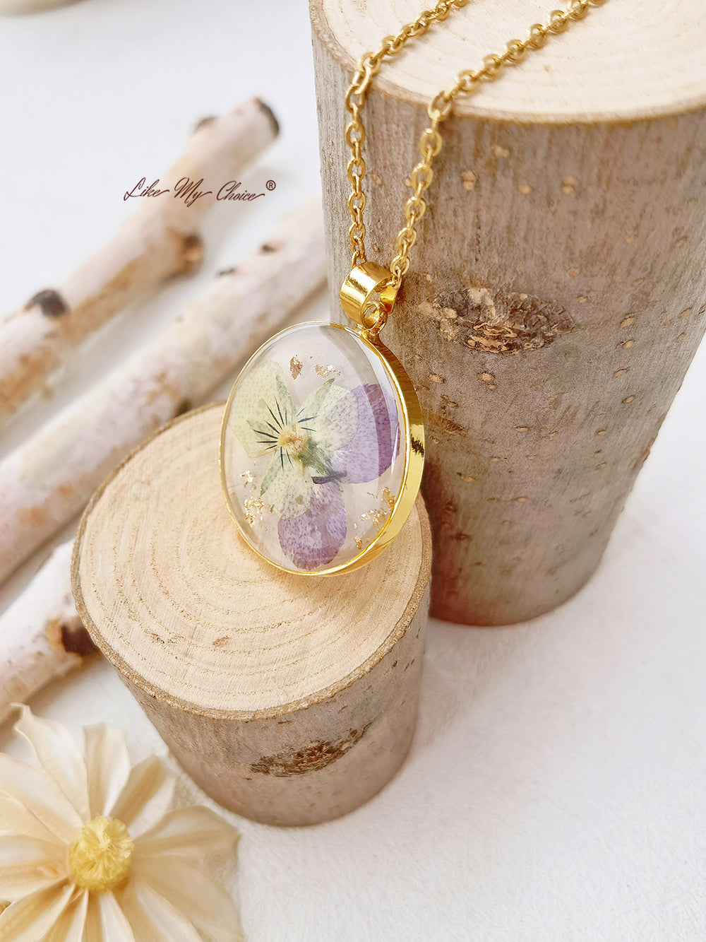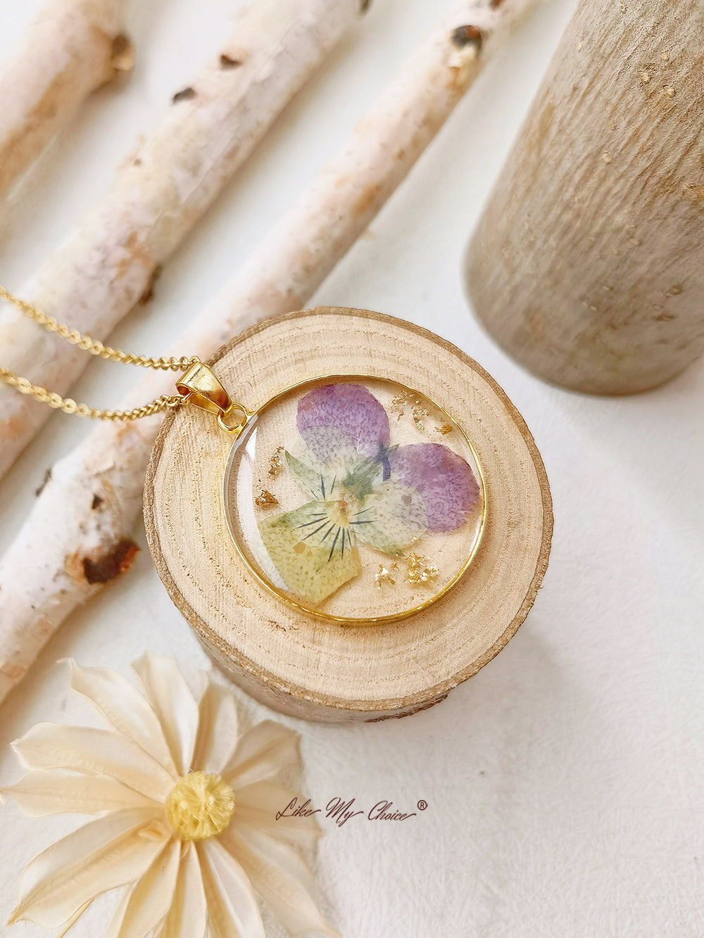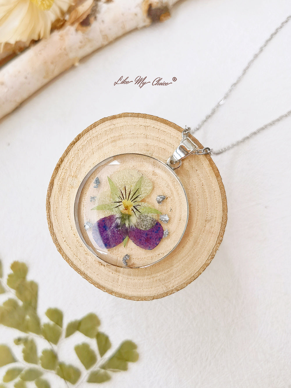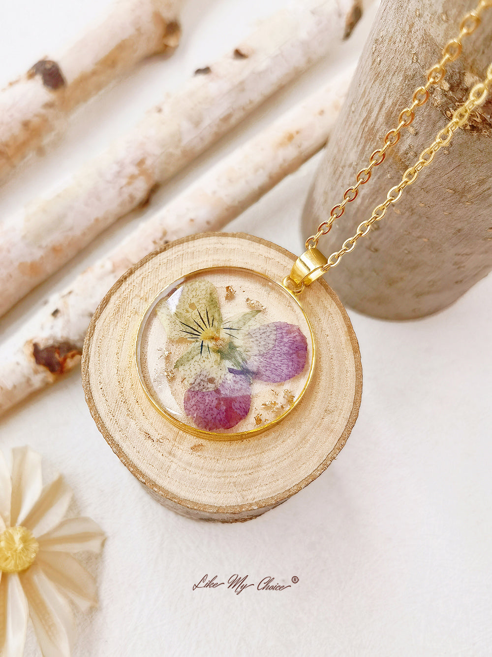 All flowers have been carefully placed in hand-poured resin,done in many steps,to give this a colorful,natural garden appearance. This Elegant Pendant will make an Eye-Catching Accessory for Any Outfit.