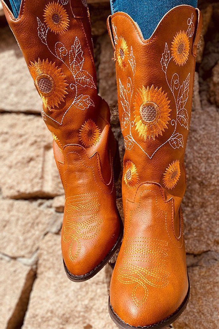 Retro Ethnic Style Sunflower Pattern Boots
