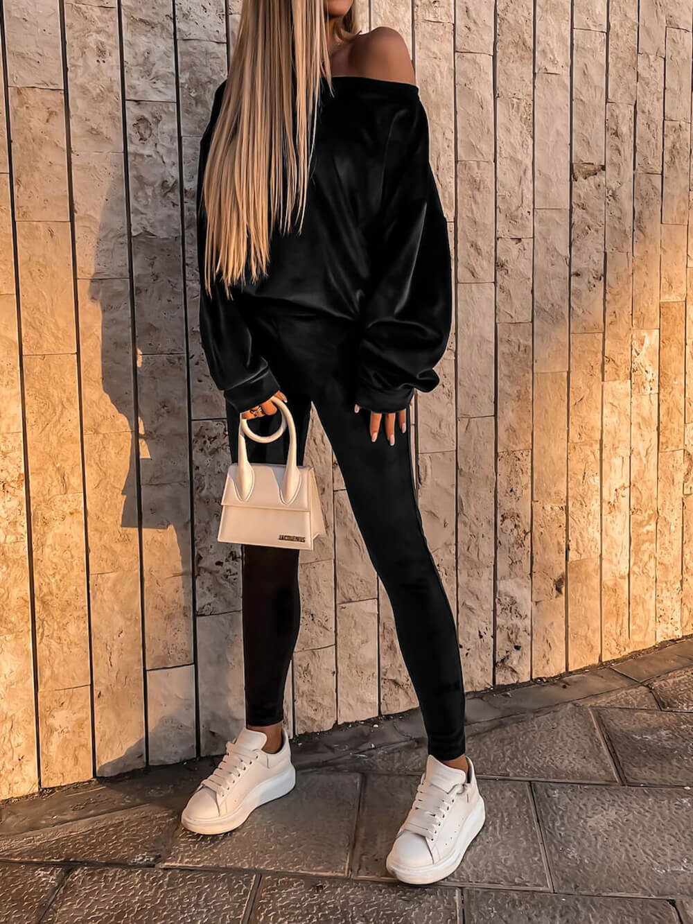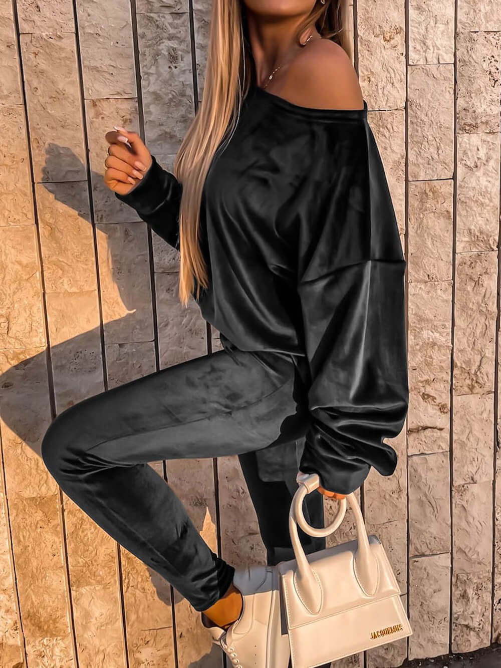 Silver fox velvet sports sweatshirt two-piece set