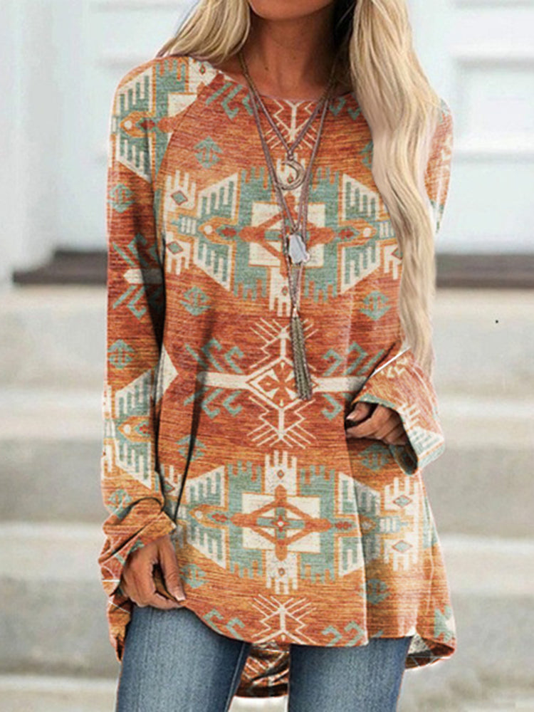 Vintage Western Print Crew Neck Tunic