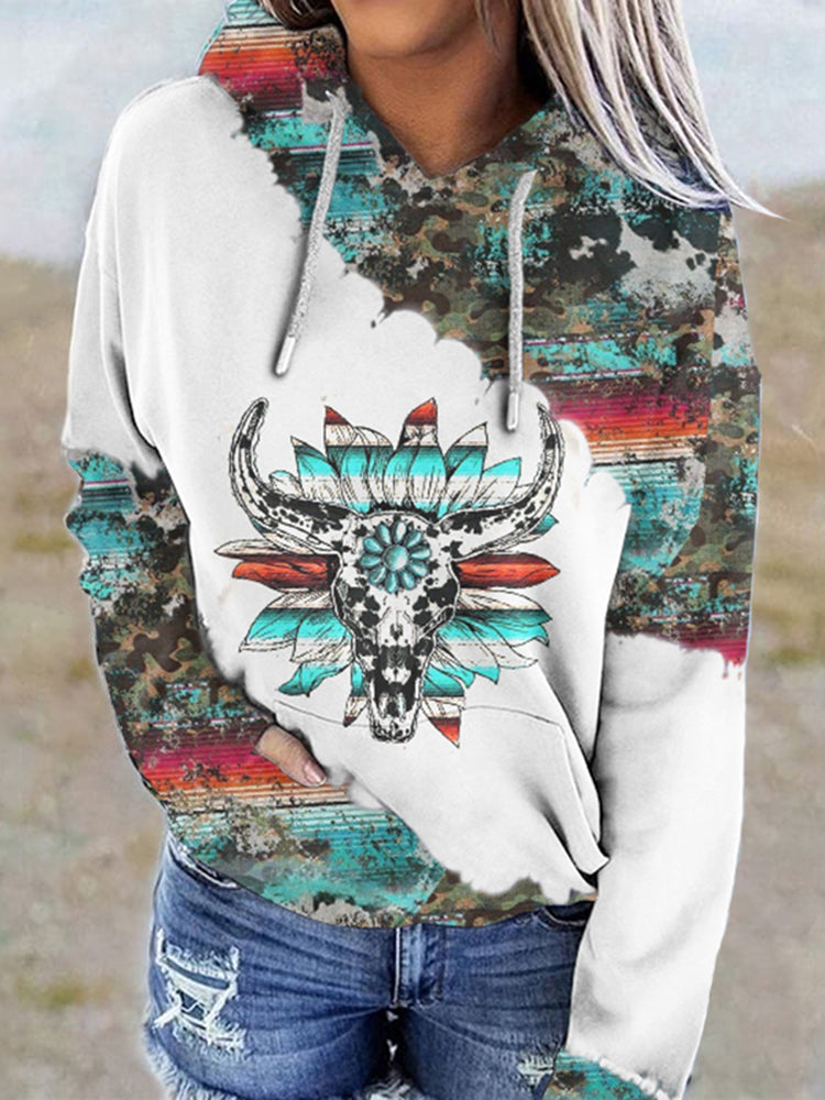 Western Print Long Sleeve Casual Hoodie