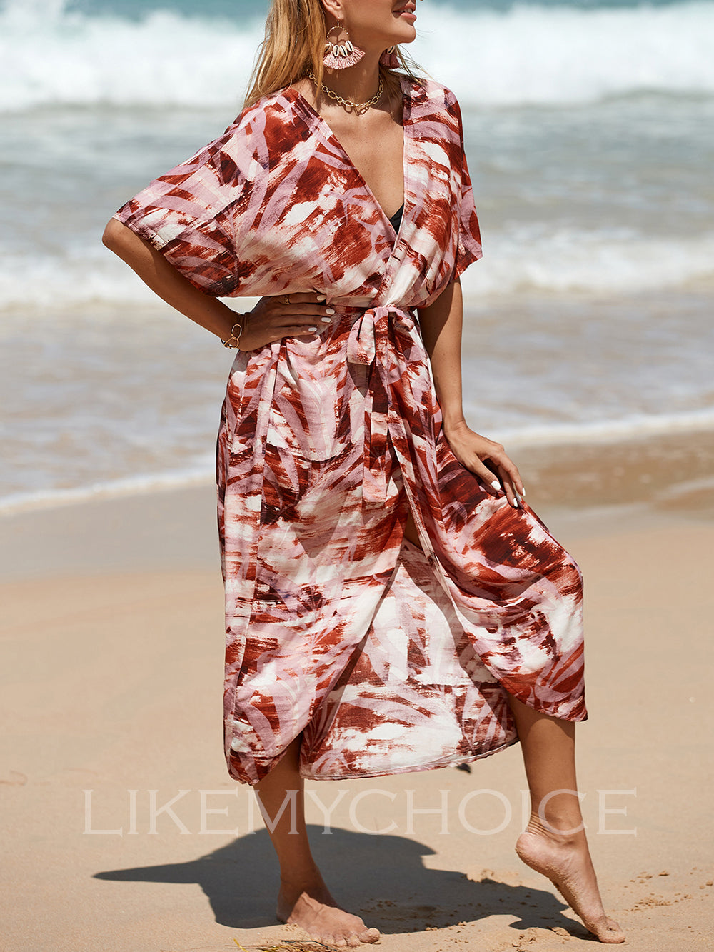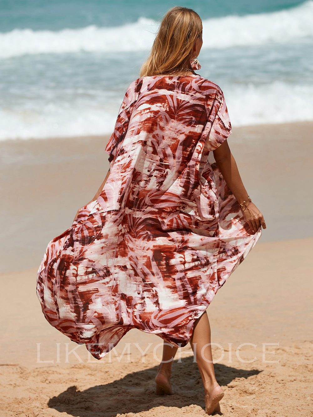 Womens Coral Print Open Front Beach Dresses
